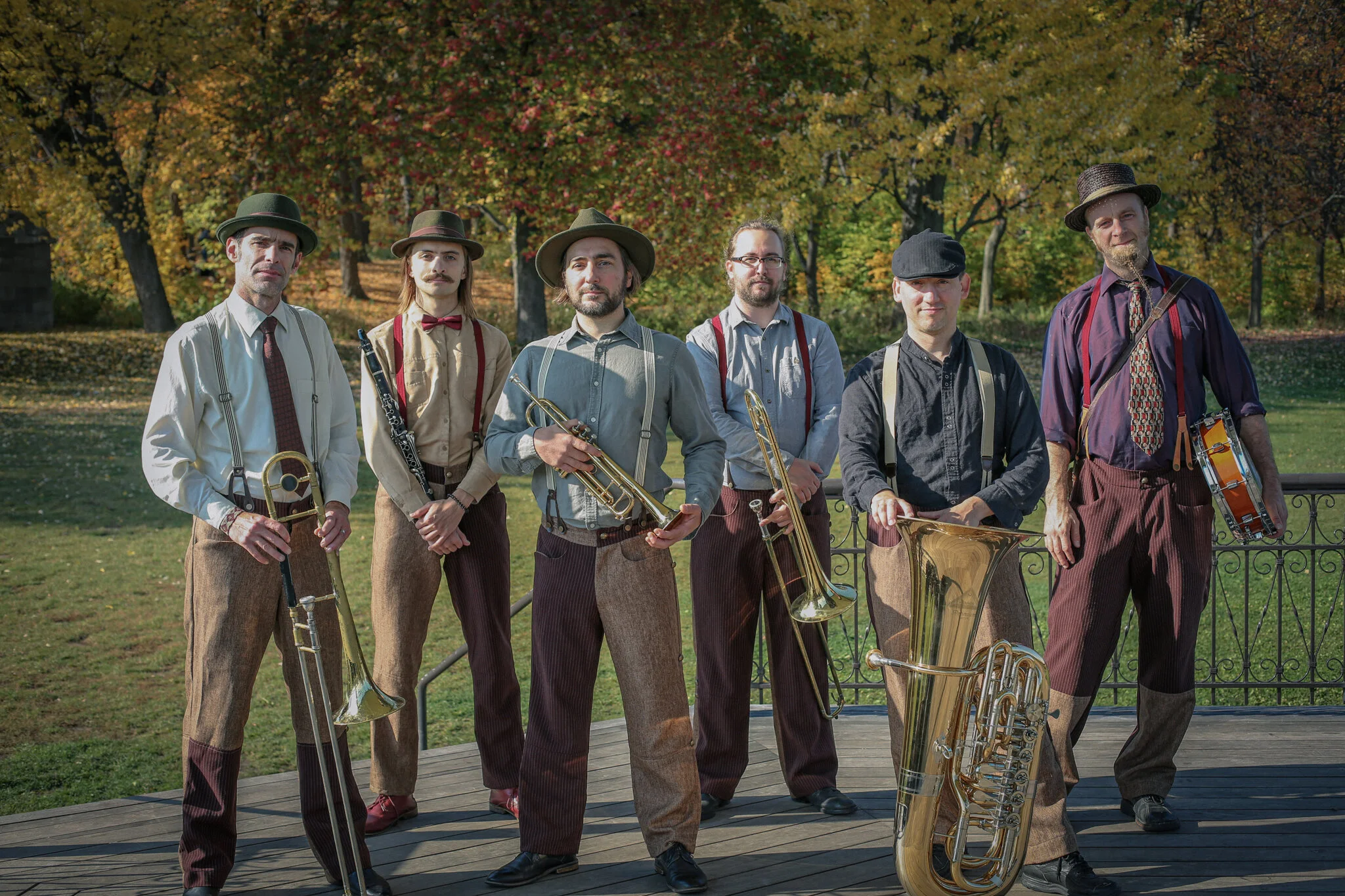 Sesquialtera has already played at various prestigious festivals, such as Montreal Jazz Fest and Completement Cirque. The group offers inside, outside and deambulatory shows and work on a pluridisciplinary project called “Les Çédilles”, that brings together music, circus, and dance. With the warmth of brass instruments and the energy of the drums, Sesquialtera offers joyful music that will help the audience deal with variable emotions.